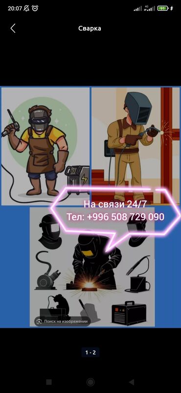 Ассалому алейкум! Көп жылдык стаждуу сварщиктер. Сварка жумуштарынын баардык түрлөрүн сапаттуу жасайбыз: - навес - ворота - качеля - перила - лестница - оградка - тапчан - решетка терезеге - ска...