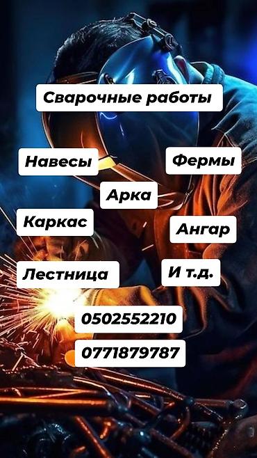 Сварочные работы Навес, каркас, ферма, лестницы Сварканын баардык турун жасайбыз. Гарантия 💯 Баасы келишимдуу 24/7 байланыштабыз чалыныздар