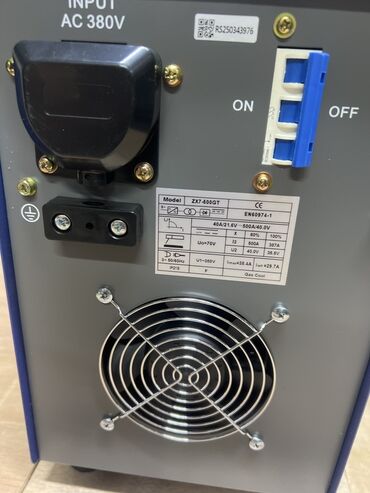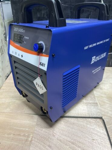 Инверторный сварочный аппарат BOMAN ZX7-500GT в синем корпусе, предназначенный для работы от сети переменного тока AC 380V. Модель оснащена цифровым дисплеем для отображения текущих параметров, что обеспечивает удобство настройки и контроля. На передней панели расположены регуляторы для точной настройки сварочного тока. Аппарат имеет два удобных ручки для переноски, что делает его мобильным и легко транспортируемым. Подходит для использования в различных условиях, обеспечивая надежное и стабильное сварочное соединение.