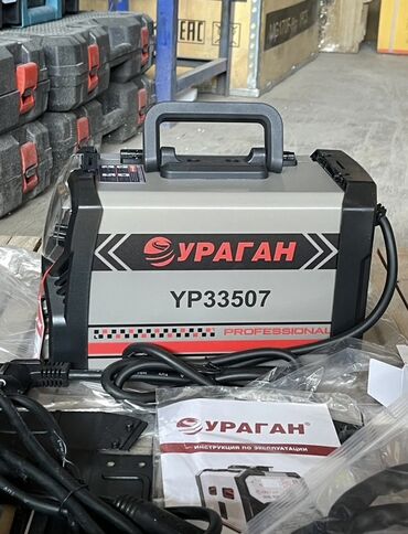 Инверторный сварочный аппарат Ураган УР33507 PROFESSIONAL, предназначенный для сварочных работ. Компактный и легкий, он оснащен ручкой для удобной переноски. В комплекте с аппаратом поставляются сварочная маска, щетка-молоток, держатель электрода и зажим массы, а также катушка проволоки и инструкция по эксплуатации. Этот аппарат подходит для использования в домашних условиях, на даче или в небольшой мастерской, обеспечивая надежное соединение металлических конструкций