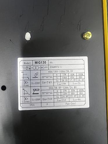 - MIG: 40–130 А (U2: 16–20,5 В)