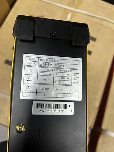 Подходит для сварки различных сталей электродами подходящего диаметра в бытовых и монтажных работах. Компактный размер и принудительное охлаждение обеспечивают удобство и стабильность при длительной работе. На табличке указана модель ARC 140 MAX и серийная информация.