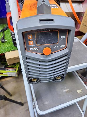 Сварочный инвертор DECO DCS-300D предназначен для выполнения сварочных работ. Модель имеет оранжевый корпус с серой передней панелью, оснащена дисплеем для отображения параметров и регулятором для точной настройки. Устройство компактно и оснащено удобной ручкой для переноски, что делает его подходящим для использования как в мастерской, так и на выездных работах.