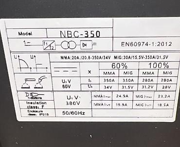 - Потребляемый ток (при макс./мин.): MMA I1max 24,9 А / I1eff 19,9 А; MIG I1max 23,2 А / I1eff 18,5 А