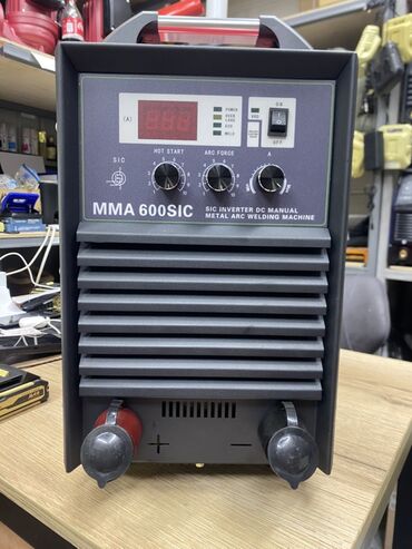 - MMA 600SIC — SiC inverter DC manual metal arc welding machine. Панель с цифровой индикацией тока, регуляторами Hot Start, Arc Force и тока, индикаторами Power/Over/Load/ECO/VRD, тумблер ON/OFF. Мощные фронтальные клеммы «+» и «−», верхняя ручка для переноса, развитое фронтальное охлаждение.