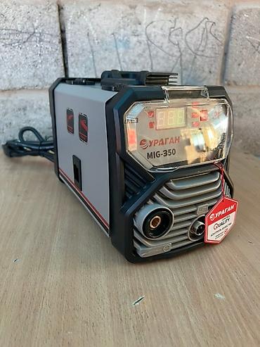 Маркировки на корпусе: УРАГАН MIG-350, YP3350T, QUALITY контроль качества. Цвет серый/чёрный с красными акцентами.