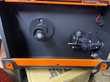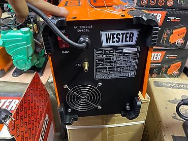 Сварочный инвертор Wester MIG-140I в оранжево-черном корпусе предназначен для различных видов сварки. На передней панели расположены регуляторы режимов и выбора типа сварки MIG/MMA, а также индикаторы состояния. Задняя панель оснащена вентилятором для охлаждения и разъемом для газового шланга. Аппарат подходит для использования как в быту, так и в профессиональных целях, обеспечивая надежное соединение металлических деталей.