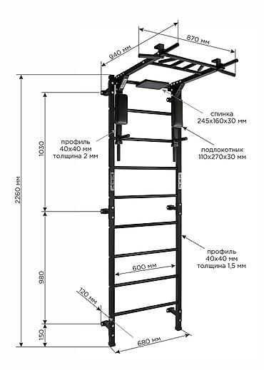 Универсальный спортивный комплекс для дома/зала, настенный Комплектация и возможности: - Шведская стенка из металлического профиля с креплением к стене. - Турник верхний с несколькими хватами (пря...