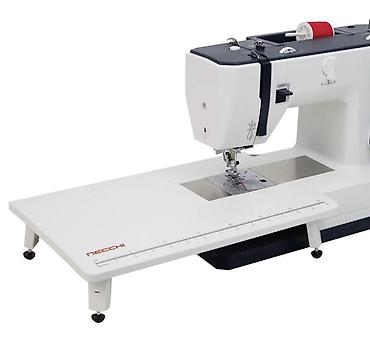 - Увеличенный рукав и съёмный удлинительный стол с разметкой для крупногабаритных изделий и квилтинга