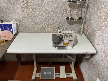 Электрическая швейная машина серого цвета, установленная на деревянном основании. Машина оснащена электроприводом с педалью, что обеспечивает удобство и контроль скорости шитья. Механизм натяжения ...