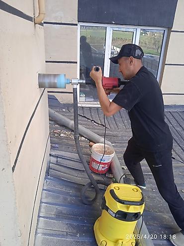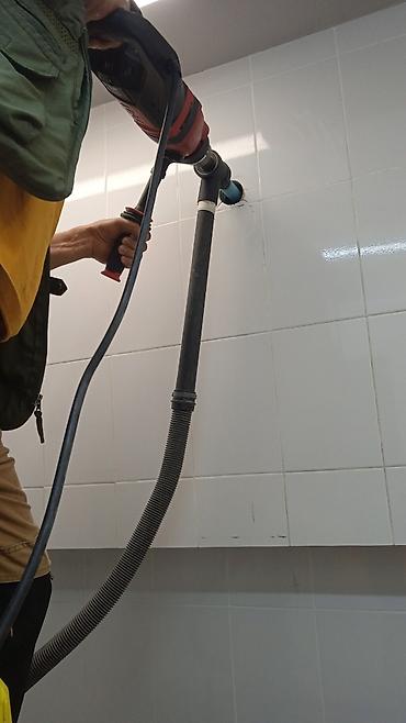 Алмазные коронки, закрепленные на сверлильных машинах (или установках алмазного бурения), вращаются и пробивают материал. Образовавшаяся пыль и отходы удаляются с помощью мощного промышленного пылесоса.