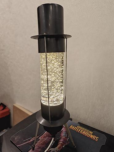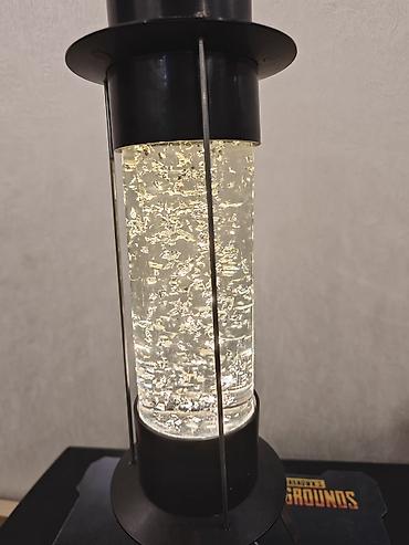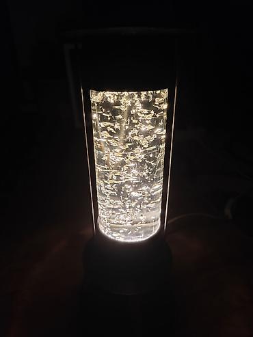 - Атмосферная настольная лампа-колонна с эффектом мерцающих частиц в прозрачной жидкости.