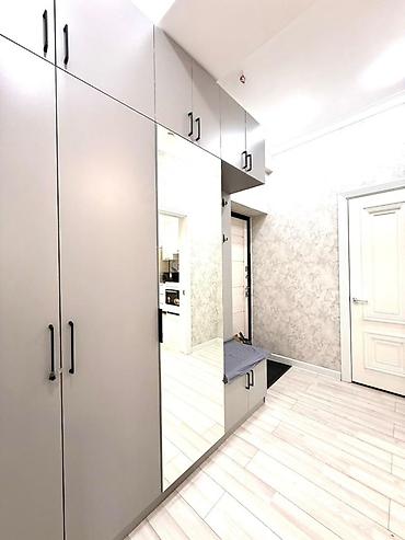 - Удобный коридор с системой хранения во всю стену: высокие шкафы, зеркало в полный рост, тумба-сиденье.