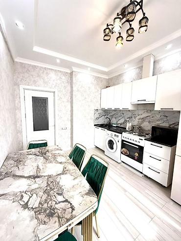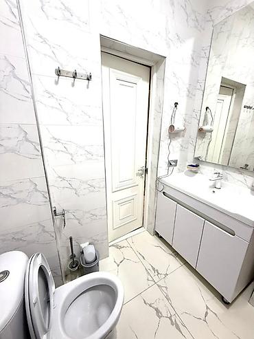 - Нейтральная светлая отделка, керамогранит под мрамор на фартуке и в санузле, светлый ламинат/плитка на полу.