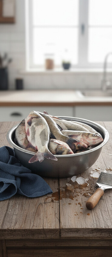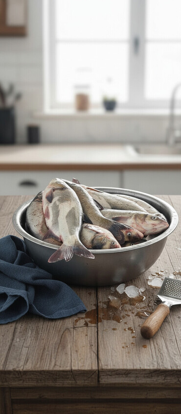 - Хранение на льду/заморозке в день вылова (по фото видно варианты охлаждённой и свежей из водоёма)