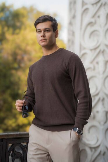 Мужской свитер, L, Новый, цвет - Коричневый, Самовывоз, Бесплатная доставка, Платная доставка