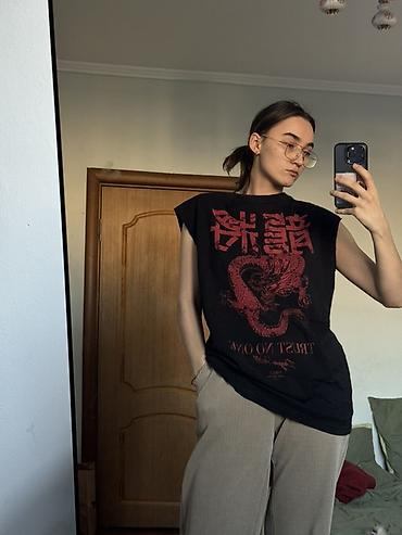 Свободная чёрная безрукавка/футболка oversize.
