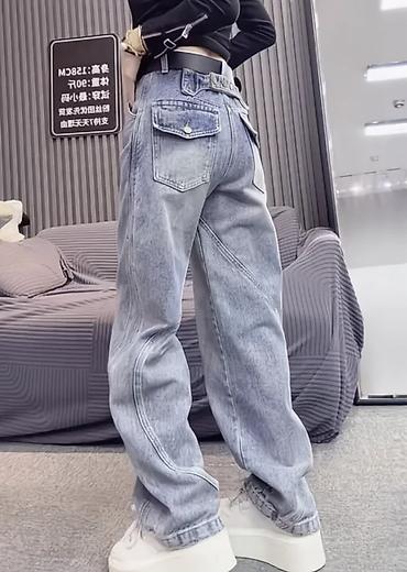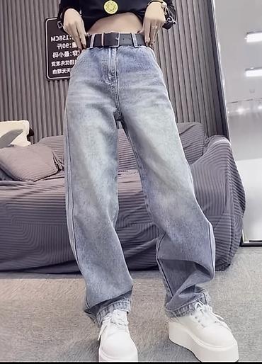 - Посадка средняя/высокая, прямой широкий крой с удлиненной штаниной.