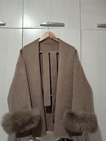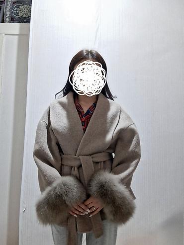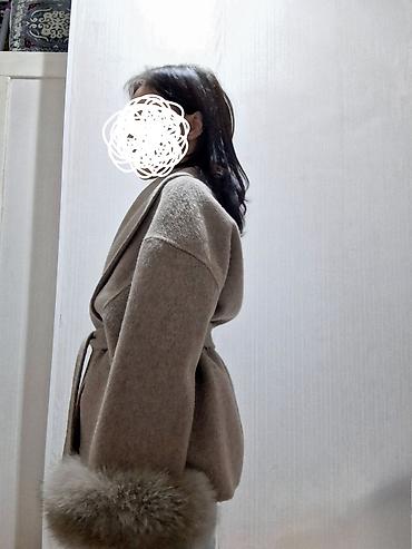Пальто женское, классического кроя, цвет беж/кэмел. Длина ниже колена. Застёжка скрытая по центру. Широкий съёмный воротник из пушистого меха в тон (эффектный объёмный), можно носить с ним или без ...