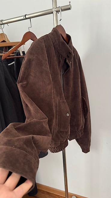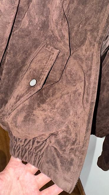 Куртка Zara, коричневая, из мягкого материала под замшу. Модель с отложным воротником и наплечными погонами на кнопках. Спереди планка на кнопках, эластичные манжеты и нижняя резинка по краю для лу...