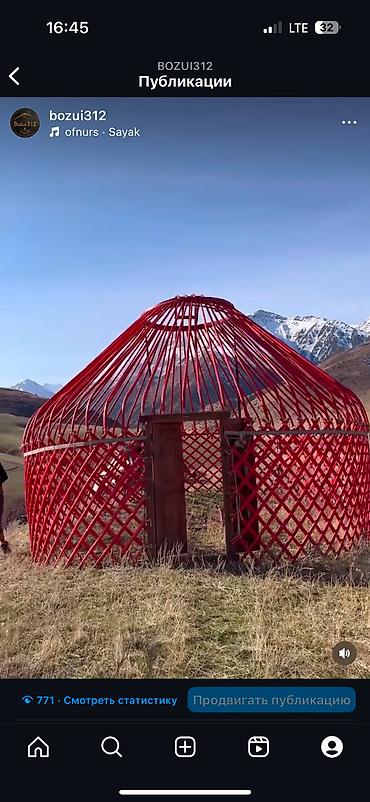 Юрта в аренду БОЗ УЙ ИЖАРАГА БЕРИЛЕТ КЕЛИН АЛУ! КЫЗ УЗАТУУ! КУДА ТОЗУ! РЕСТОРАНДАНДЫН ИЧИНЕ АР КАНДАЙ МЕРОПРИЯТИЯЛАРГА