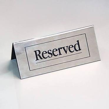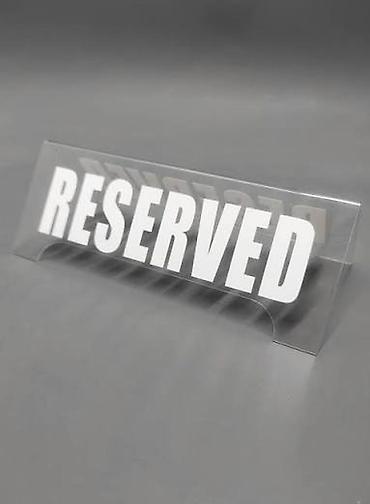 Настольная табличка “RESERVED” для обозначения забронированных мест.