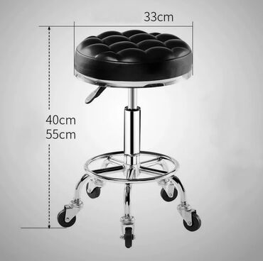 Круглый стул-табурет черного цвета с мягким сиденьем, прошитым декоративными квадратами. Регулируемая высота позволяет настроить стул под разные задачи. Хромированное основание с пятью колесиками обеспечивает мобильность и устойчивость. Подходит для использования в салонах красоты, медицинских учреждениях или дома.