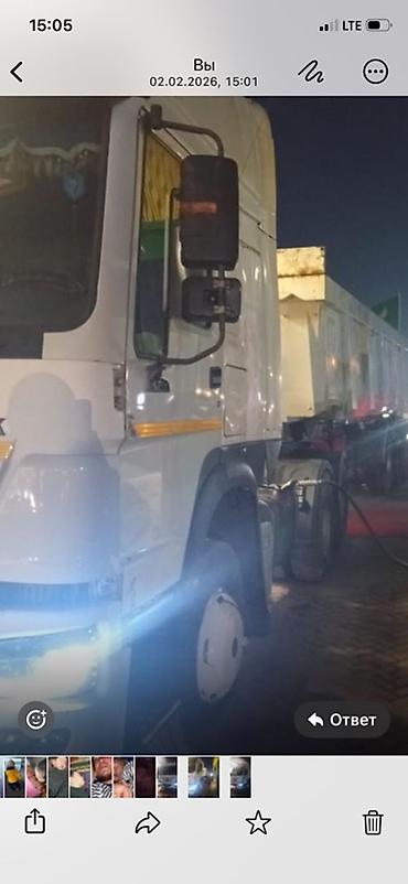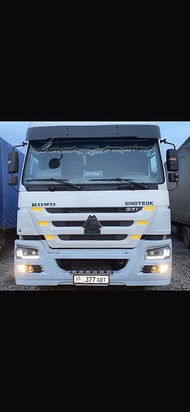 Седельный тягач HOWO с самосвальным полуприцепом - Марка/модель: Sinotruk HOWO (тягач) - Кабина: высокая крыша, солнцезащитный козырёк, боковые зеркала на кронштейнах, дополнительный наружный прож...