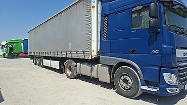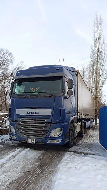 Тягач DAF XF (синий), еврофура Описание: - Магистральный седельный тягач DAF серии XF, высокая кабина. - 4x2, рассчитан на работу с тентованным полуприцепом (на фото — классическая еврофура). - Аэ...