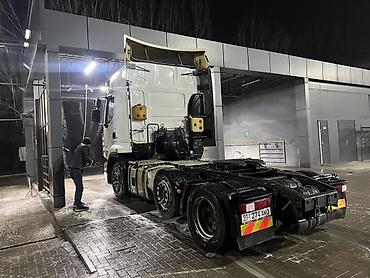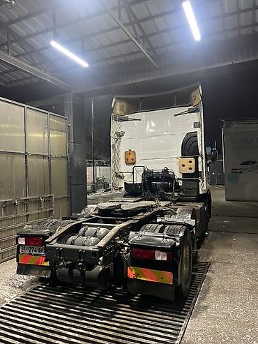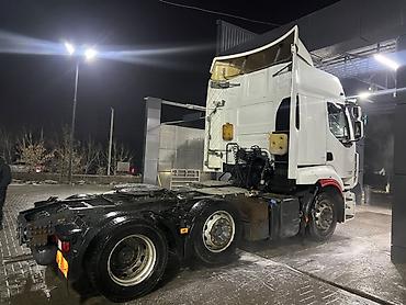 Тягач Renault Magnum с тентованным полуприцепом - Марка/модель: Renault Magnum (тягач) - Кабина: высокое расположение, большая лобовая площадь, боковые зеркала на длинных кронштейнах, солнцезащитн...