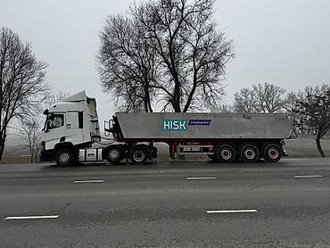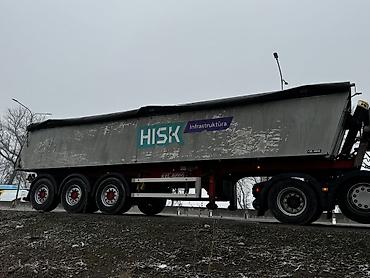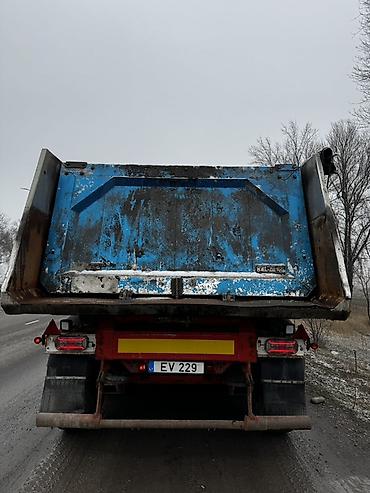 - Полуприцеп: трёхосный самосвальный KEL-BERG (указание на бортах), стальной кузов большого объёма.