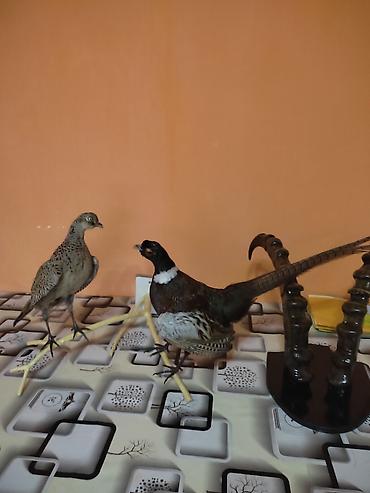 Таксидермическая композиция с фазанов: самец с белым «воротником» и