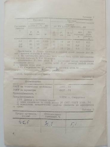 Изготовлена в СССР по ГОСТ. Цепь грузовая, пластинчатая, под звёздочку. Коэффициент запаса прочности = 3.