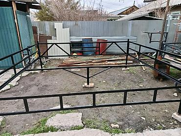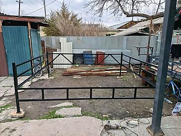 Размер по фото — просторная площадка для частного двора; высота перил удобна для безопасного ограждения. Возможна доработка под калитку/ворота и установка дополнительных стоек, настила или крыши.
