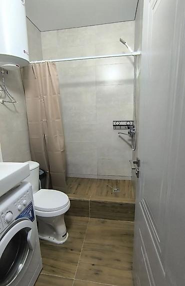 - Санузел совмещённый: душевая зона с бортиком и шторкой, унитаз, раковина.