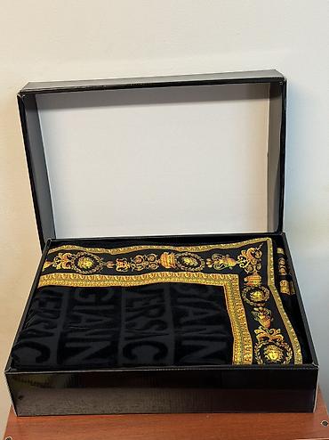 - Плотное махровое полотно, глубокий черный цвет с декоративной золотистой бордюрной лентой