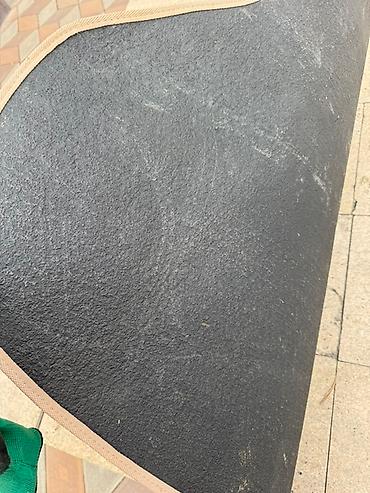 - Материал: верх — плотный ворсовый текстиль, кромка окантована; низ — противоскользящее резиновое/битумное покрытие для фиксации на полу и защиты от влаги.