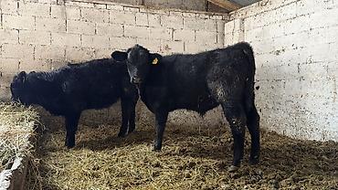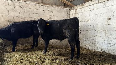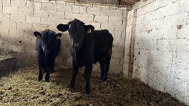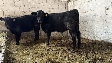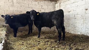 Телята чёрной масти (2 головы) в стойле.