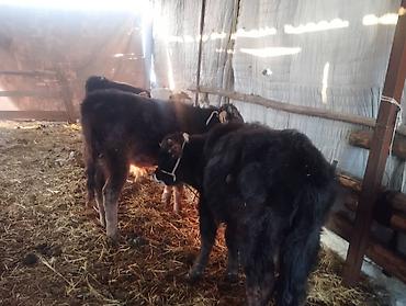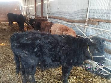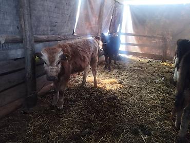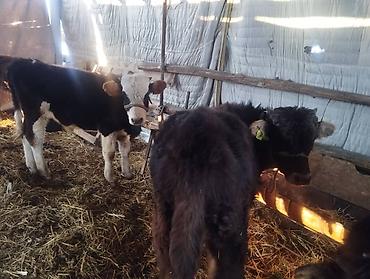- Телята/бычки разной масти (черные, бурые, рыжие), ушные бирки.