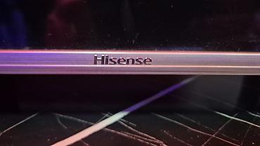 - Дизайн: узкие рамки, металлическая центральная подставка в виде прямоугольной рамы, логотип Hisense на нижней планке