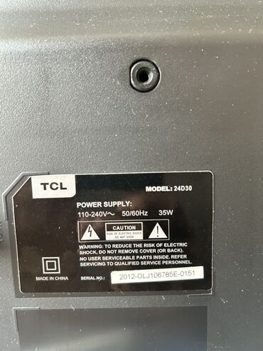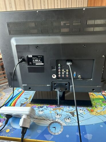 Телевизор TCL с черной рамкой и подставкой. Подходит для просмотра телепередач, фильмов и другого видеоконтента. Задняя панель оснащена необходимыми разъемами для подключения различных устройств.
