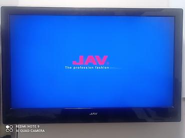 Телевизор JAV, диагональ около 40-42". ЖК-панель, настольная подставка и возможность настенного крепления (крепления VESA видны на задней панели).