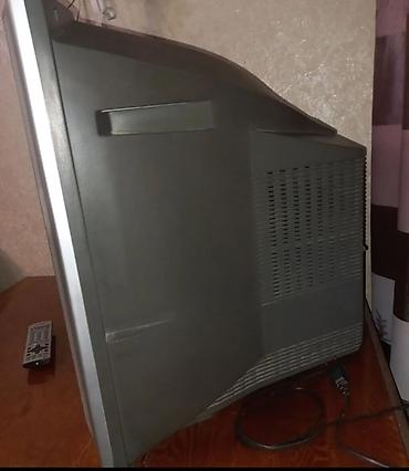 Телевизор Samsung (кинескопный, серебристый корпус) - Диагональ ориентировочно 28–32" (широкоформатная трубка, плоский экран). - Встроенные фронтальные стереодинамики. - Панель кнопок управления н...