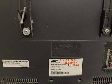 Маркировка на шильдике: LA32S81B/XSG; тип питания AA32S6; S/N AU53MLPB90068M. На корпусе есть предупреждающие наклейки и сервисные обозначения.