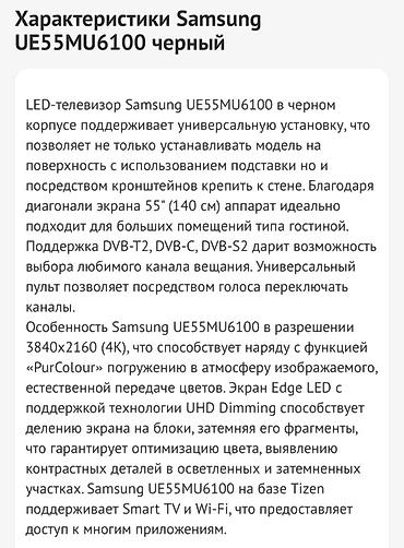Модель/код: UE55MU6100UXCE (серия MU6100).