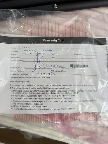 - Пульт и документация: гарантийный талон на изделие (в комплекте пакет с Warranty Card, заполненной датой 08.04.2022).