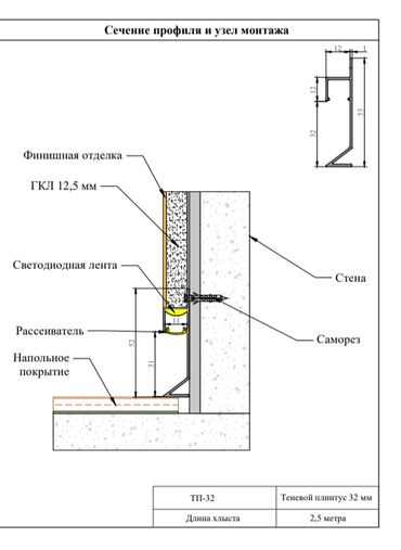 теневой плинтус скрытый плинтус с нишей для подсветки и крышкой Производство Казахстан не Китай. полимерная краска. При необходимости есть мастер для установки, так как его установка требует о...