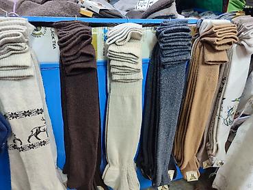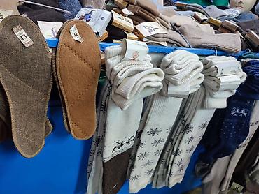 - Носки из натуральной шерсти: однотонные и с жаккардовыми узорами (оленя, снежинки и др.), усиленная пятка и мысок, высокое голенище. На ярлыках указаны состав «Wool» и размеры (встречаются 40–45, 43–45).