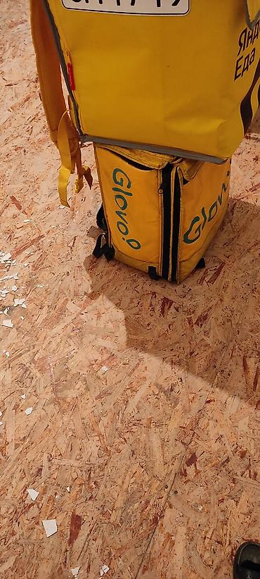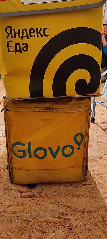 - Цвет: жёлтый с фирменными логотипами Glovo и Яндекс Еда