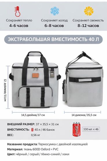 ❄️ Термоизоляция — сохраняет холод и тепло до 6 часов • 👜 Вместительная — подходит для ланч-боксов, напитков, фруктов и фастфуда • 🧊 Можно использовать с аккумуляторами холода • 💧 Внутренний вла...